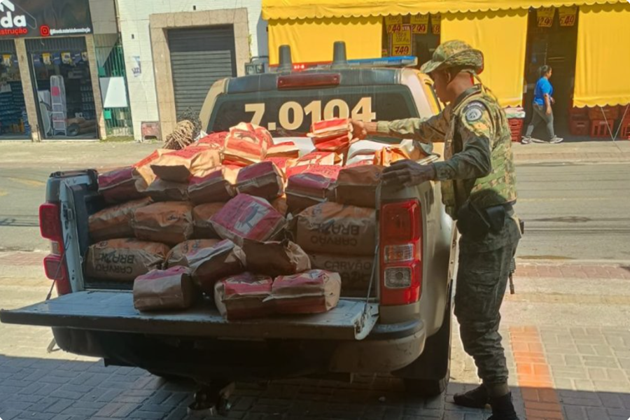 Polícia apreende mais de 2 toneladas de carvão ilegal e conduz dono de comércio à delegacia em Camaçari